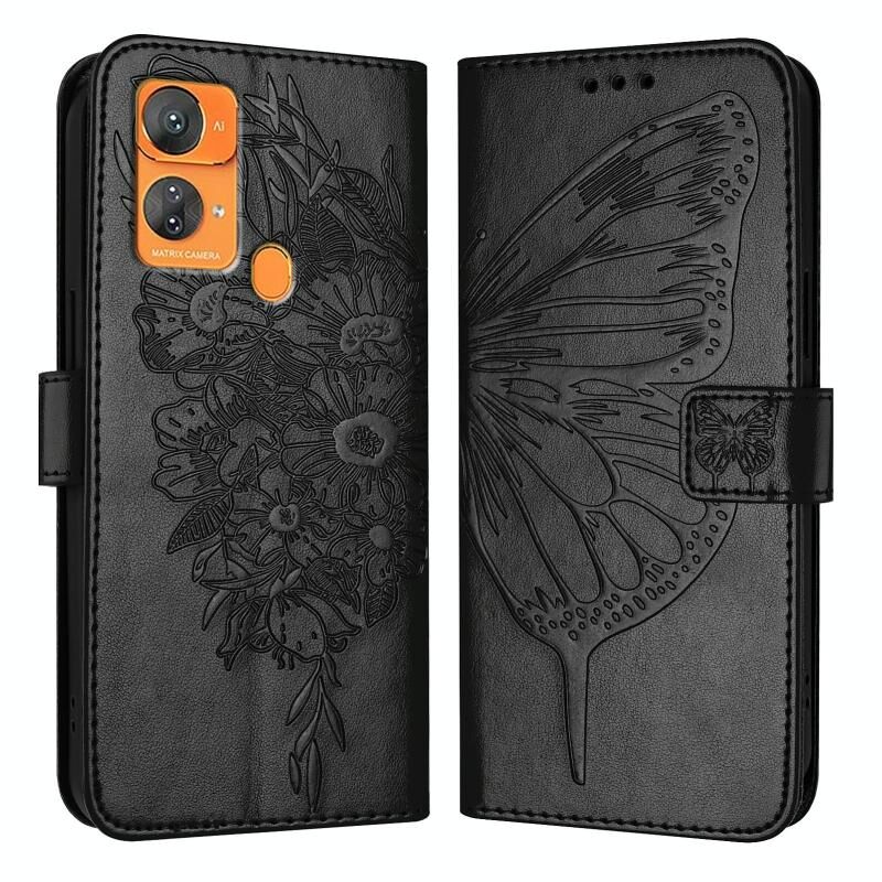 Για Oukitel C33 ανάγλυφη πεταλούδα δερμάτινη θήκη τηλεφώνου (μαύρο)