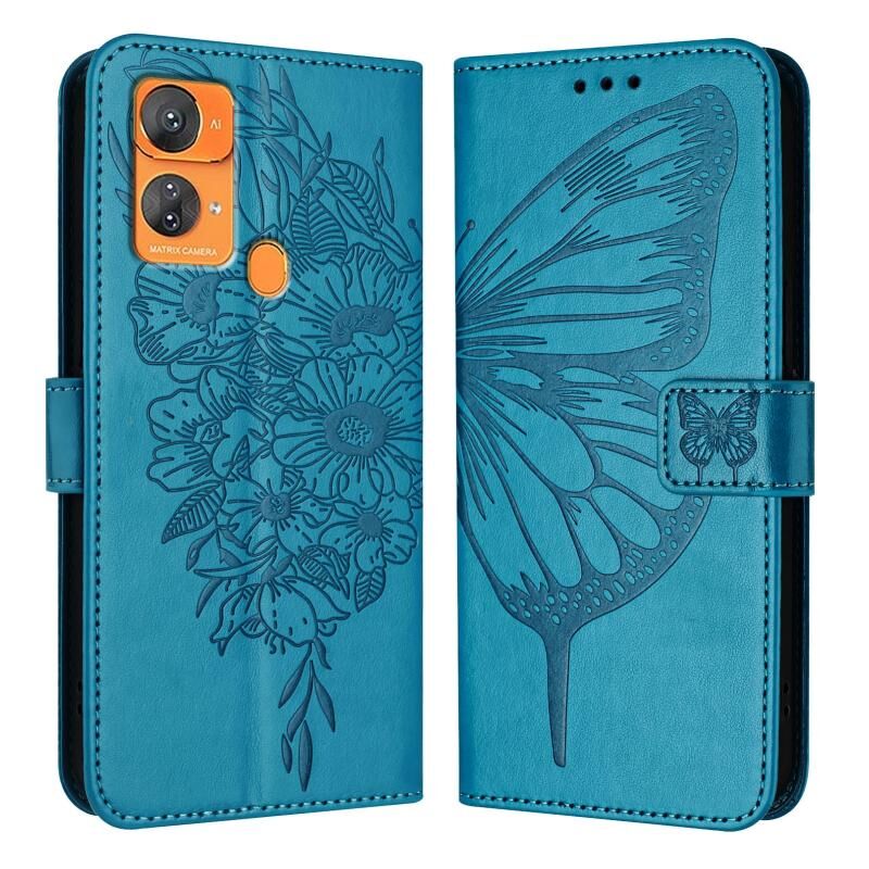 Για Oukitel C33 ανάγλυφη πεταλούδα δερμάτινη θήκη τηλεφώνου (μπλε)