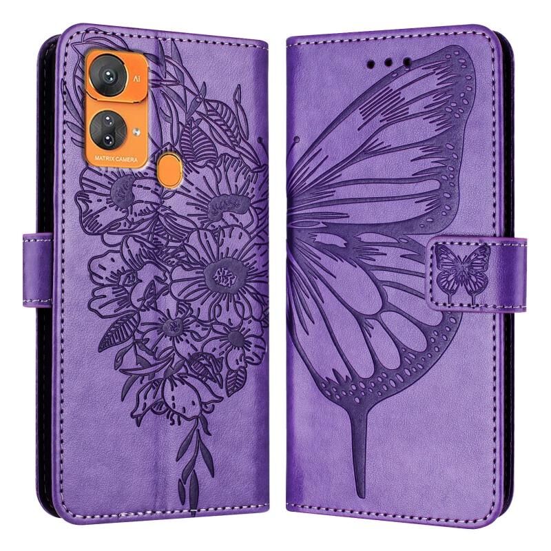 Για Oukitel C33 ανάγλυφη πεταλούδα δερμάτινη θήκη τηλεφώνου (μωβ)