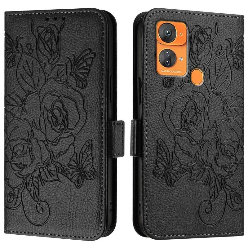 For Oukitel C33 Embossed Rose RFID Anti-theft Leather Phone Case(Black)
