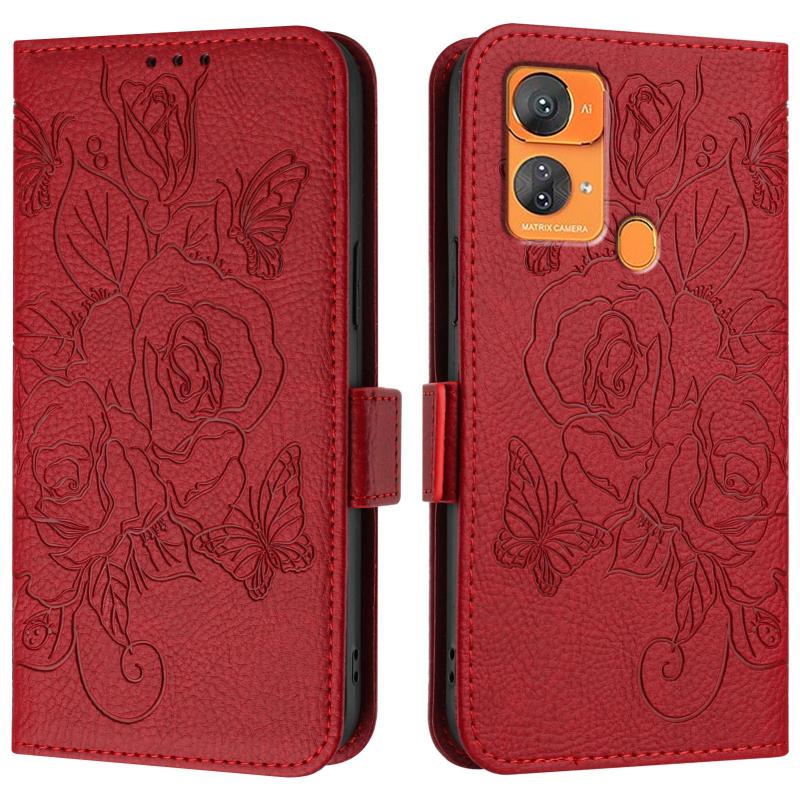 For Oukitel C33 Embossed Rose RFID Anti-theft Leather Phone Case(Red)