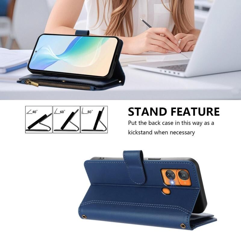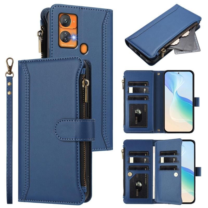 For Oukitel C33 Magnetic Closure 9 Card Slots Zipper Leather Case with Hand Strap(Dark Blue)
