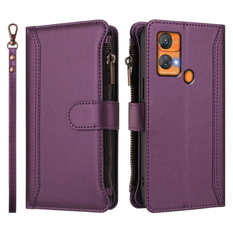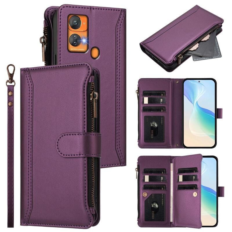 For Oukitel C33 Magnetic Closure 9 Card Slots Zipper Leather Case with Hand Strap(Purple)