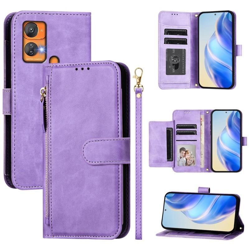 For Oukitel C33 Multi-Card Slots Zipper Wallet Leather Phone Case(Purple)