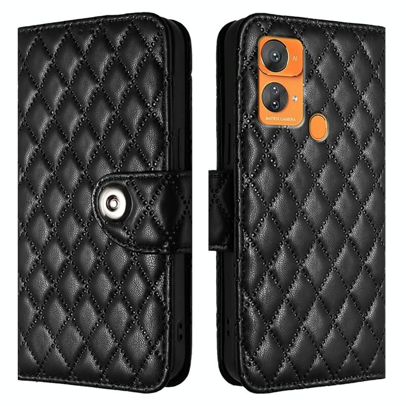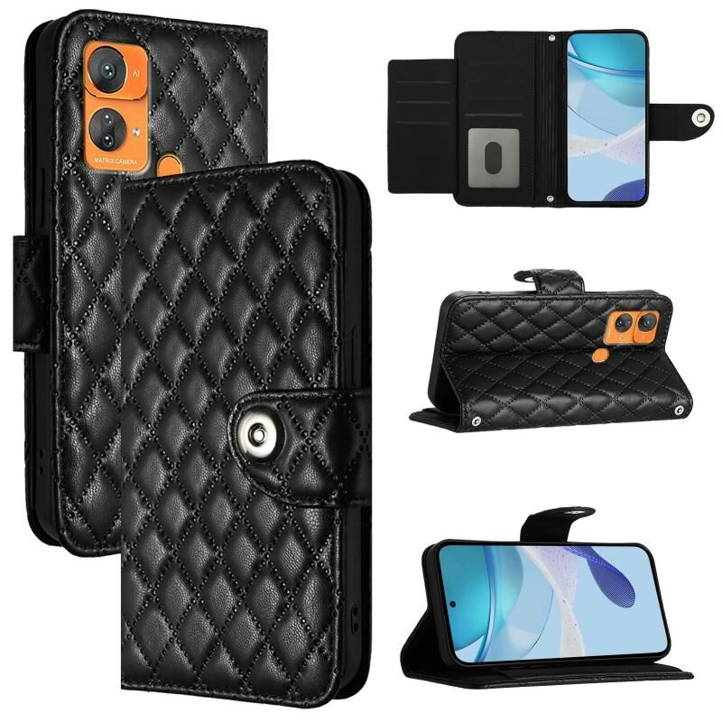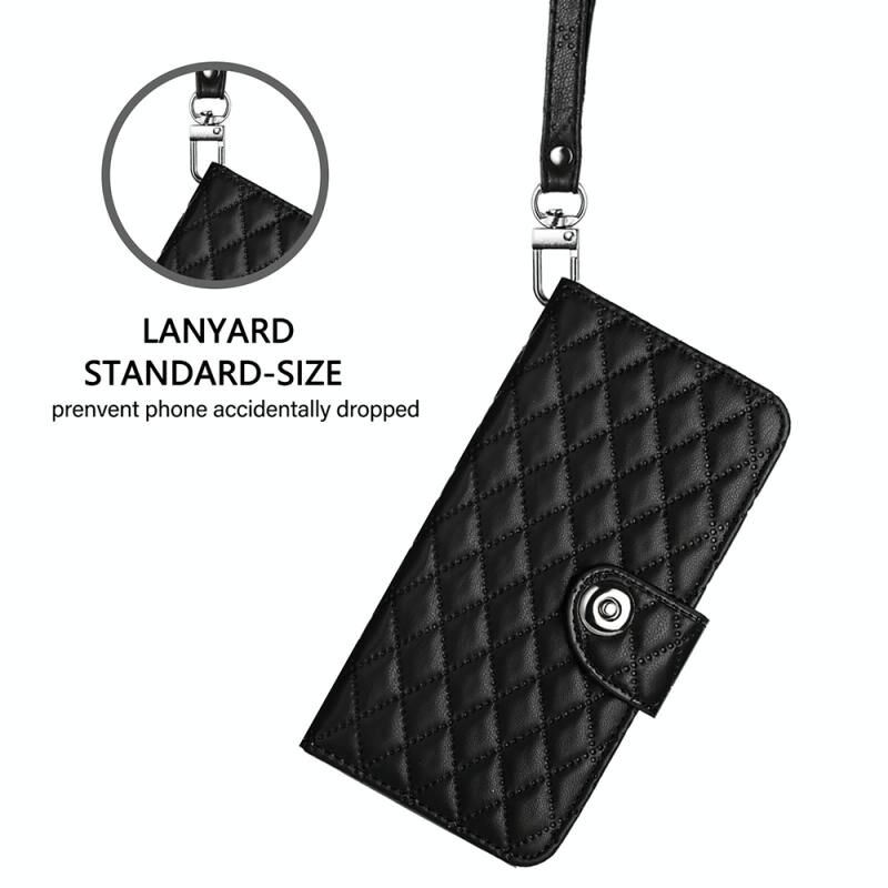 Για το Oukitel C33 Rhombic Texture Flip δερμάτινη θήκη τηλεφώνου με κορδόνι (μαύρο)