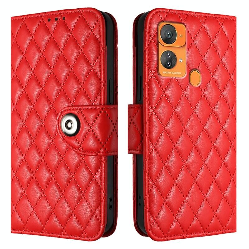 Για το Oukitel C33 Rhombic Texture Flip δερμάτινη θήκη τηλεφώνου με κορδόνι (κόκκινο)