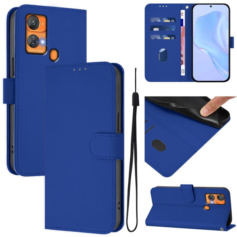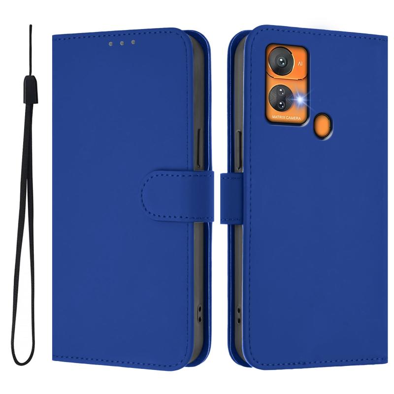 For Oukitel C33 Skin Feel Solid Color Leather Phone Case with Lanyard(Dark Blue)