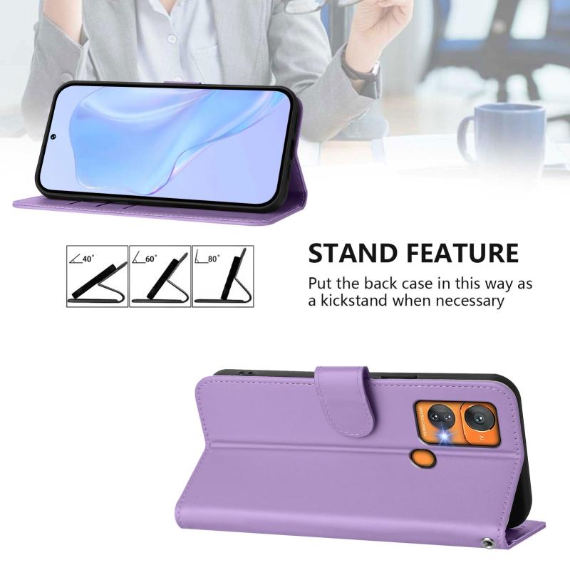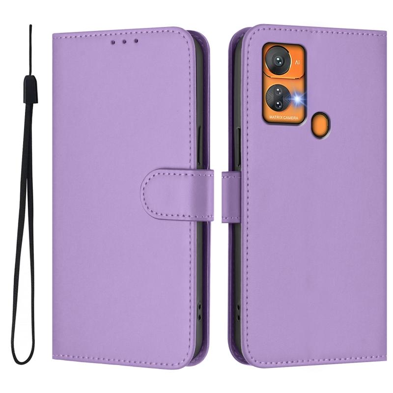 For Oukitel C33 Skin Feel Solid Color Leather Phone Case with Lanyard(Lavender Purple)