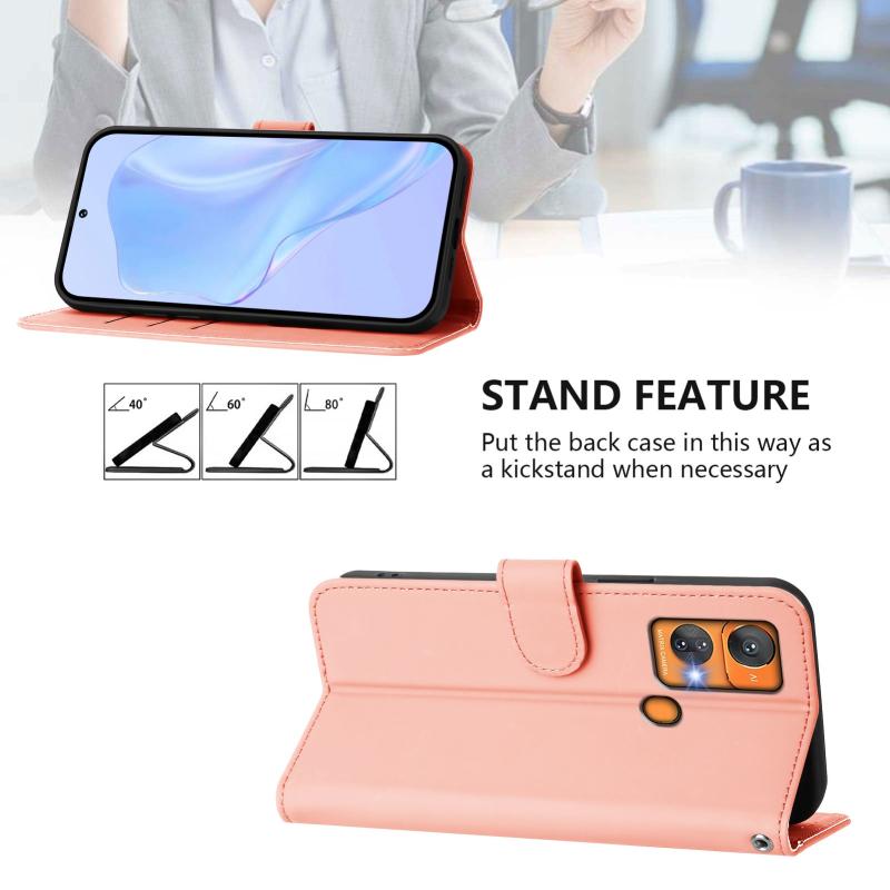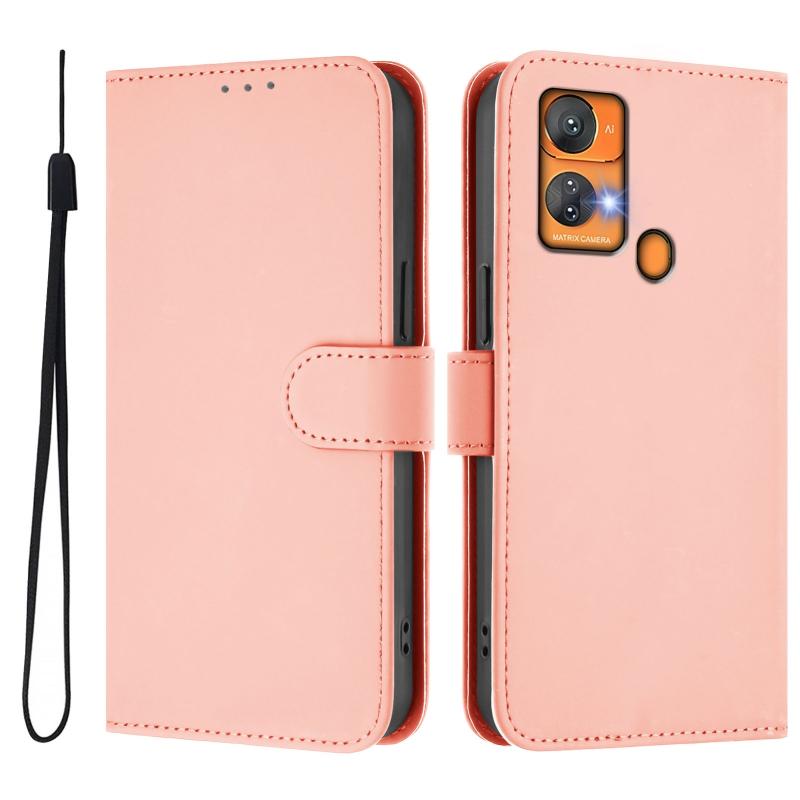 For Oukitel C33 Skin Feel Solid Color Leather Phone Case with Lanyard(Pink)