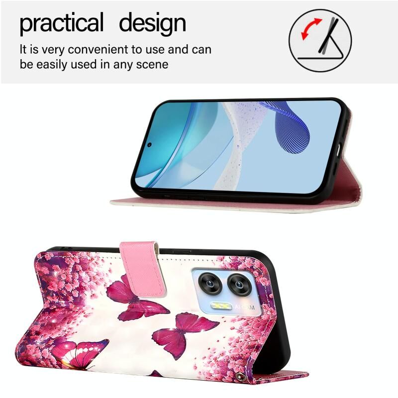 Θήκη τηλεφώνου από δέρμα με οριζόντιο άνοιγμα και τρισδιάστατη ζωγραφική για Oukitel C35 / C36 (Ροζ Πεταλούδα)