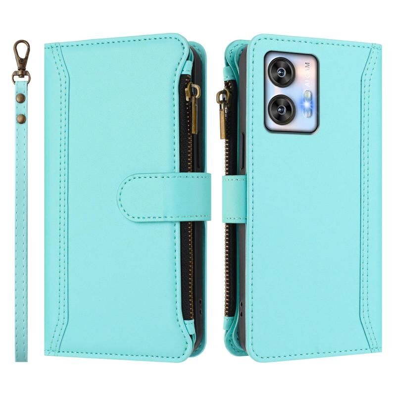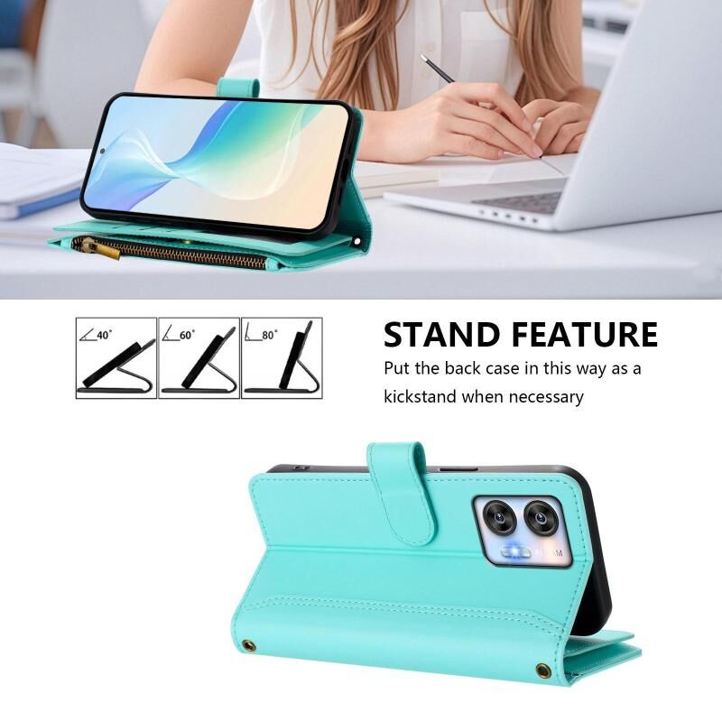For Oukitel C35 Magnetic Closure 9 Card Slots Zipper Leather Case with Hand Strap(Mint Green)