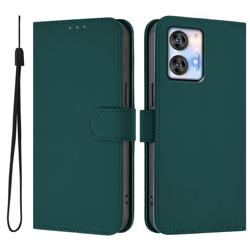 For Oukitel C35 Skin Feel Solid Color Leather Phone Case with Lanyard(Dark Green)