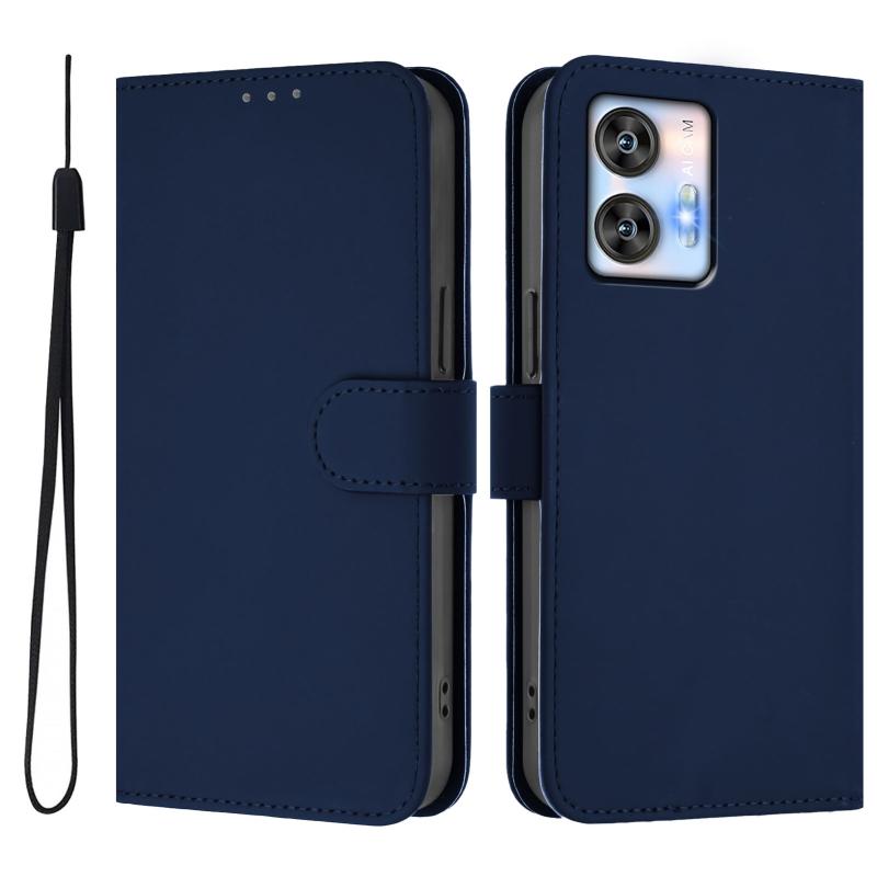 For Oukitel C35 Skin Feel Solid Color Leather Phone Case with Lanyard(Navy Blue)