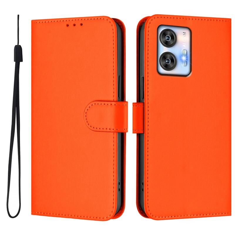 For Oukitel C35 Skin Feel Solid Color Leather Phone Case with Lanyard(Orange)