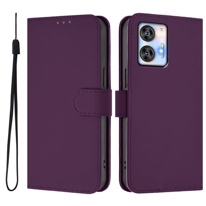 For Oukitel C35 Skin Feel Solid Color Leather Phone Case with Lanyard(Violet)