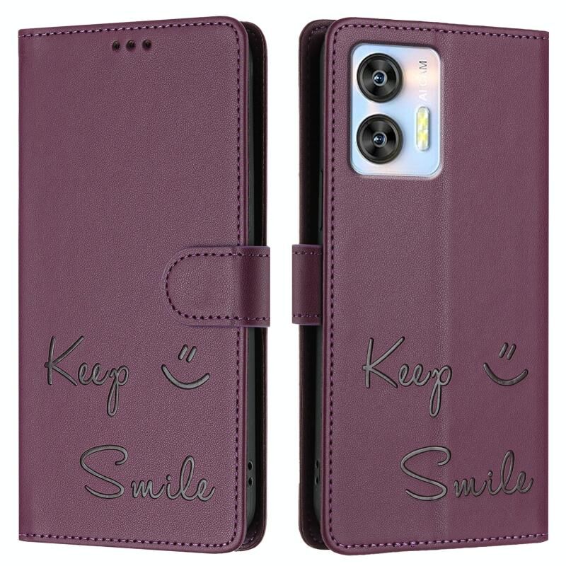 Για Oukitel C36 / C35 Χαμόγελο ανάγλυφο RFID δερμάτινη θήκη τηλεφώνου (Violet)