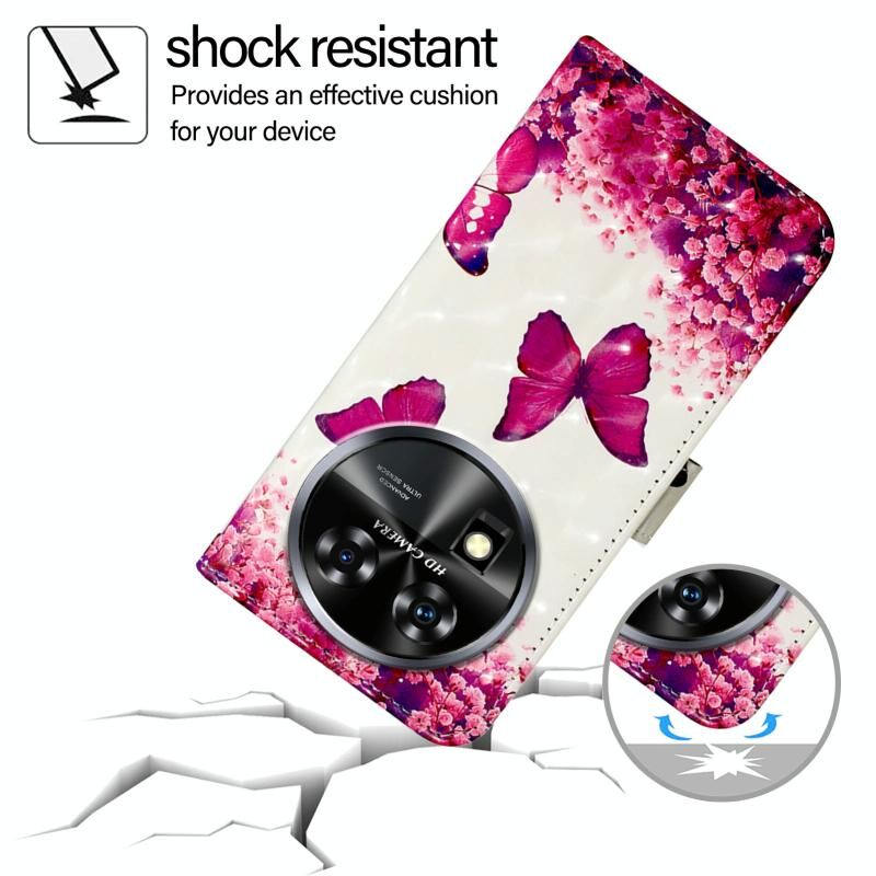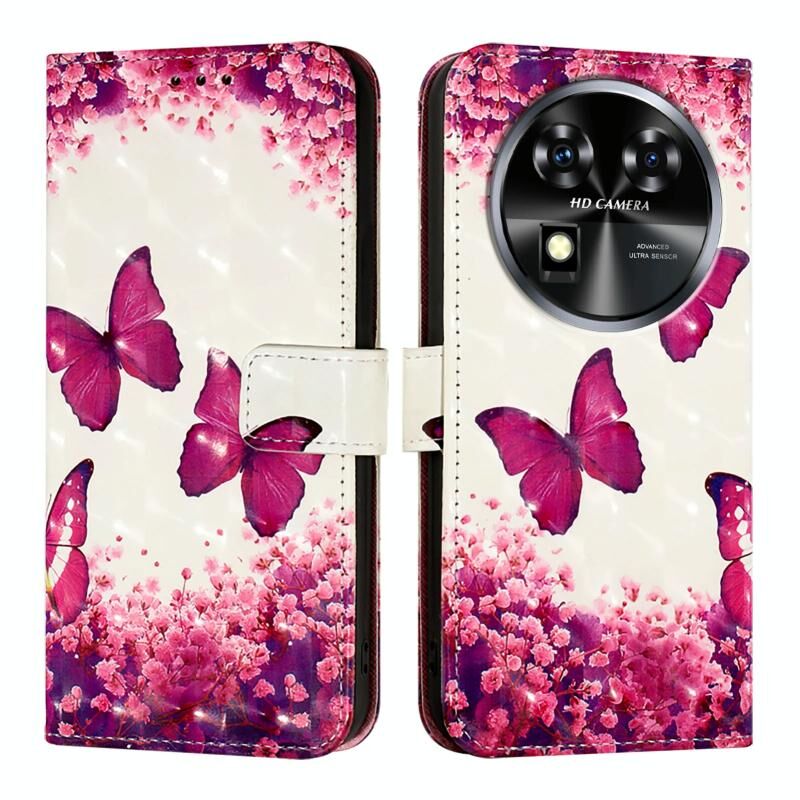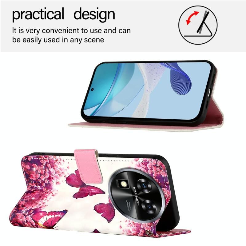 Θήκη τηλεφώνου Oukitel C37 3D Ζωγραφικής Οριζόντιας Αναδίπλωσης Δερμάτινη (Ρόδινο Πεταλούδα)
