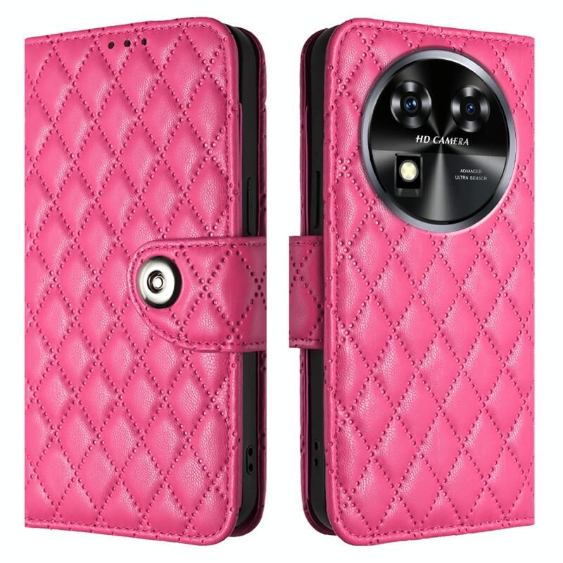 Για το Oukitel C37 Rhombic Texture Flip δερμάτινη θήκη τηλεφώνου με κορδόνι (Rose Red)