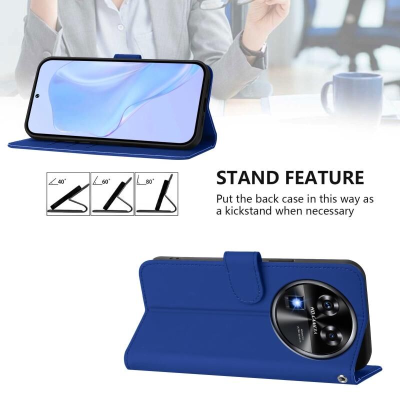For Oukitel C37 Skin Feel Solid Color Leather Phone Case with Lanyard(Dark Blue)