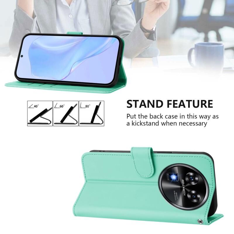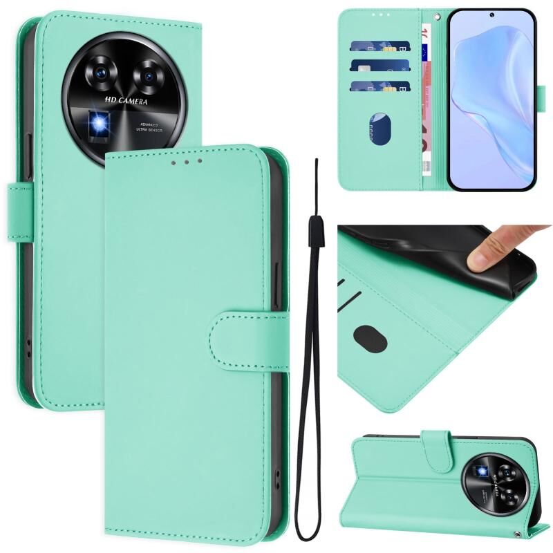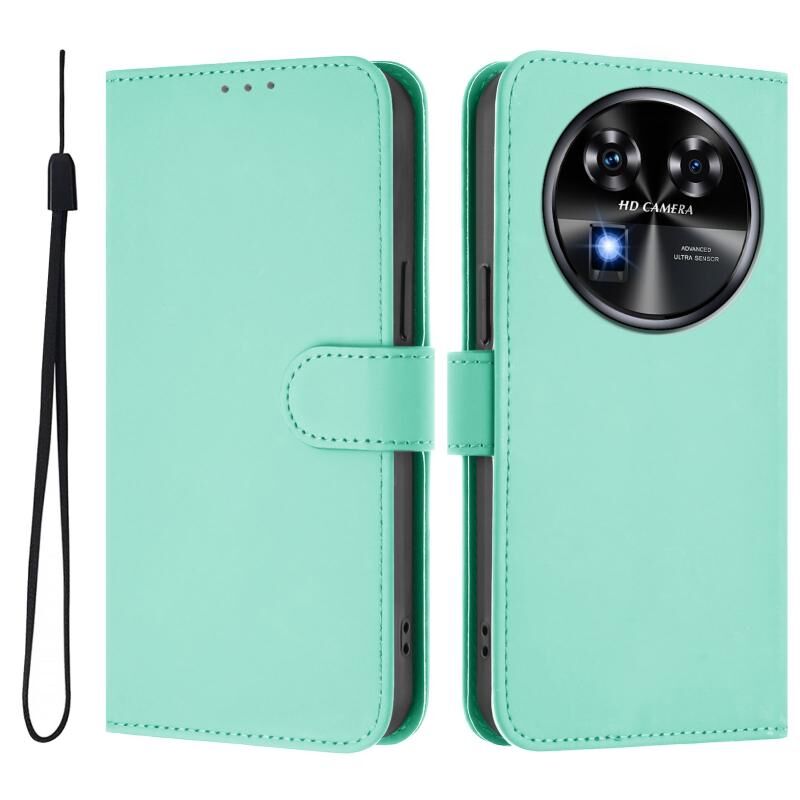 For Oukitel C37 Skin Feel Solid Color Leather Phone Case with Lanyard(Mint Green)