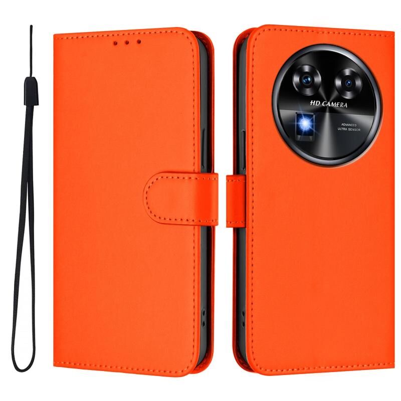 For Oukitel C37 Skin Feel Solid Color Leather Phone Case with Lanyard(Orange)