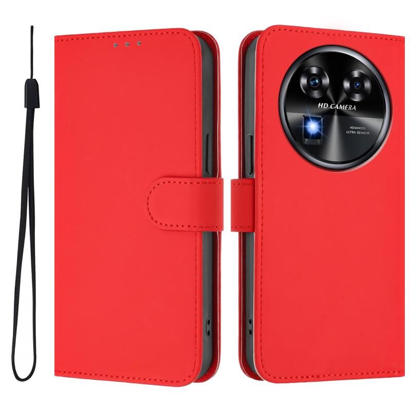 For Oukitel C37 Skin Feel Solid Color Leather Phone Case with Lanyard(Red)