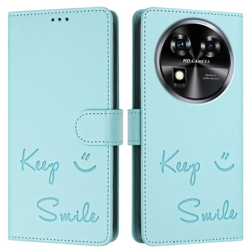 Για Oukitel C37 Χαμόγελο ανάγλυφο RFID δερμάτινη θήκη τηλεφώνου (πράσινο χρώμα)