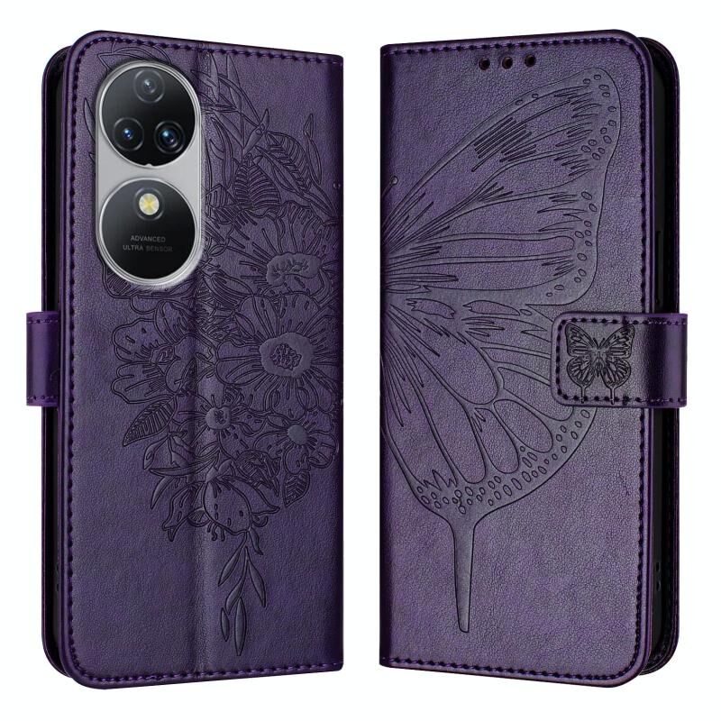 Για Oukitel C38 ανάγλυφη πεταλούδα δερμάτινη θήκη τηλεφώνου (σκούρο μοβ)