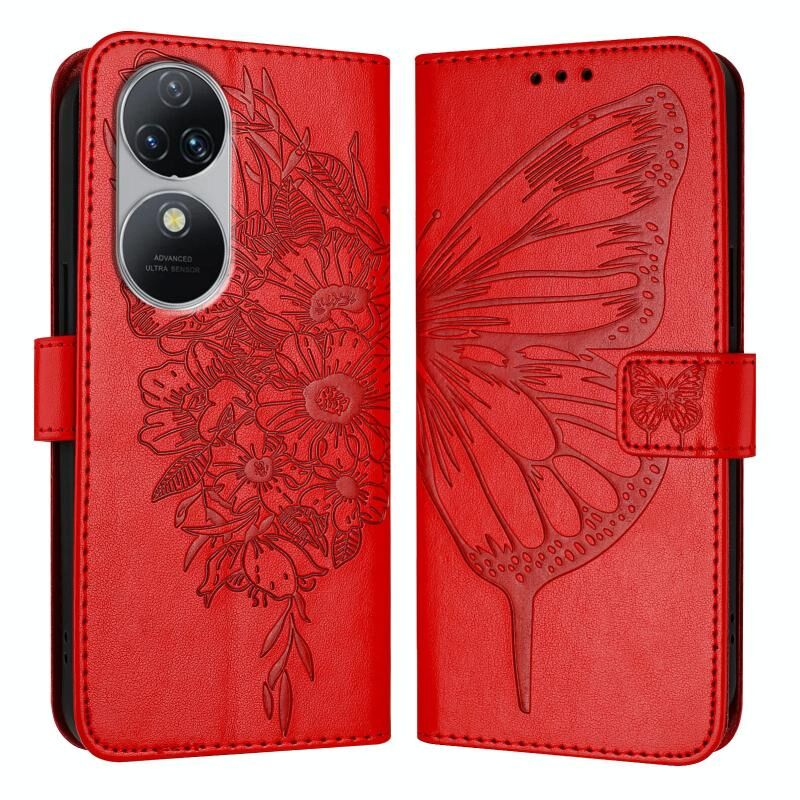 Για Oukitel C38 ανάγλυφη πεταλούδα δερμάτινη θήκη τηλεφώνου (κόκκινο)