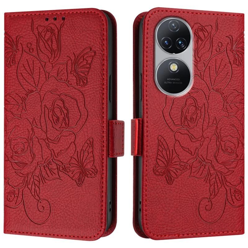 For Oukitel C38 Embossed Rose RFID Anti-theft Leather Phone Case(Red)