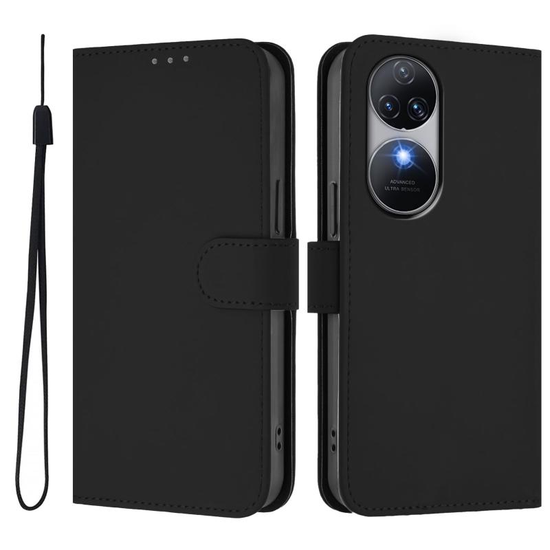 For Oukitel C38 Skin Feel Solid Color Leather Phone Case with Lanyard(Black)