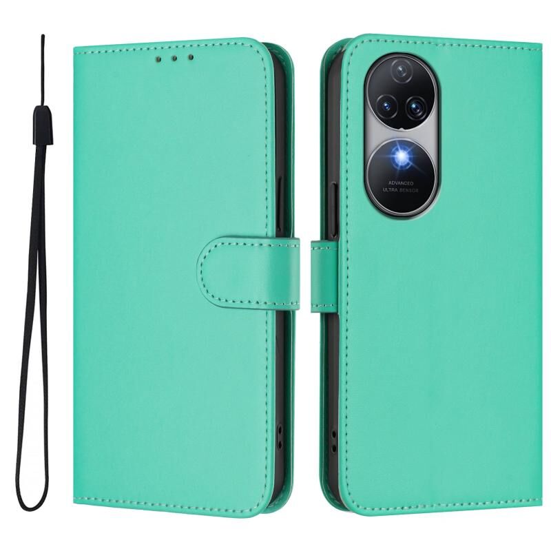 For Oukitel C38 Skin Feel Solid Color Leather Phone Case with Lanyard(Green)