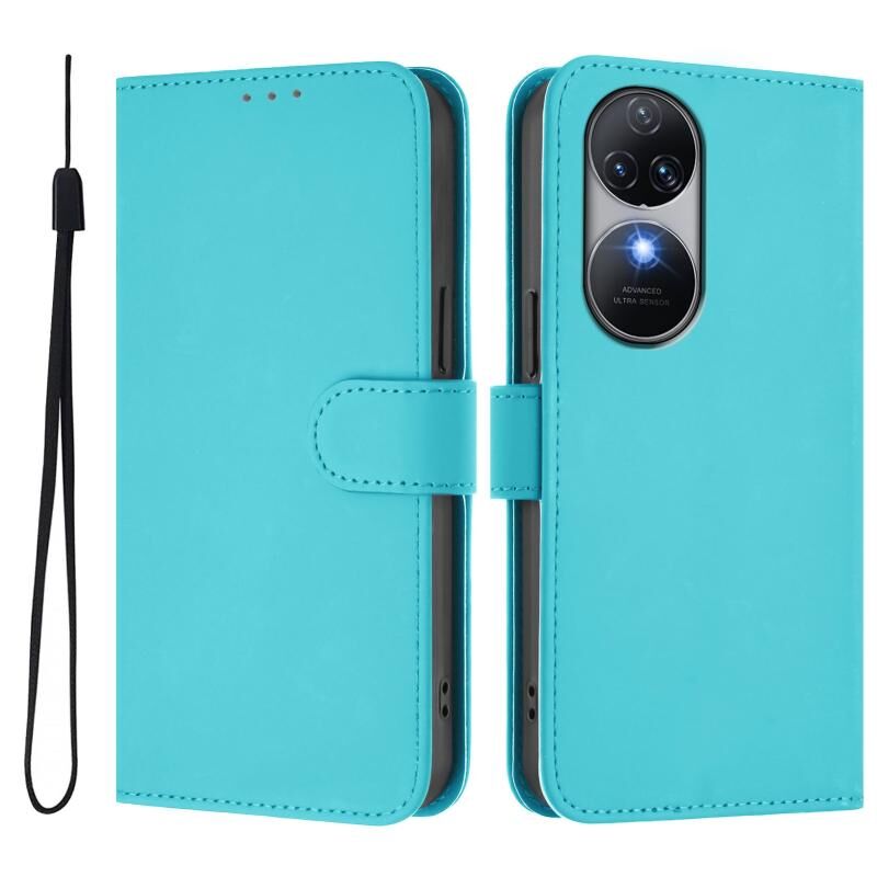 For Oukitel C38 Skin Feel Solid Color Leather Phone Case with Lanyard(Lake Blue)