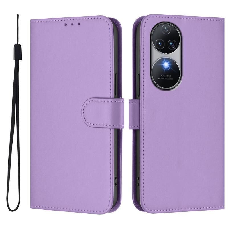 For Oukitel C38 Skin Feel Solid Color Leather Phone Case with Lanyard(Lavender Purple)