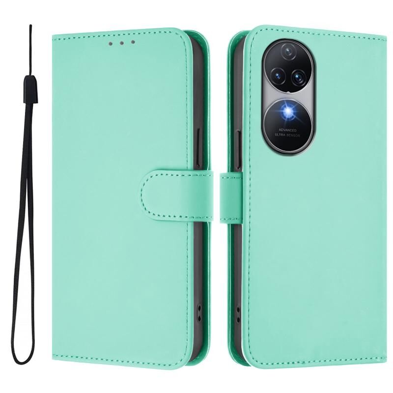 For Oukitel C38 Skin Feel Solid Color Leather Phone Case with Lanyard(Mint Green)