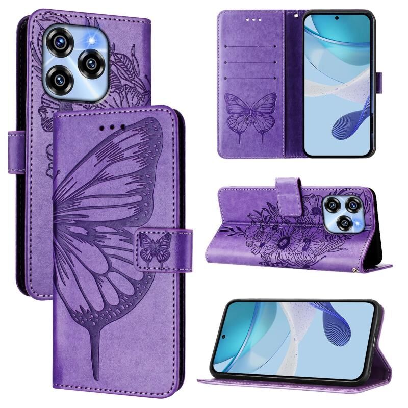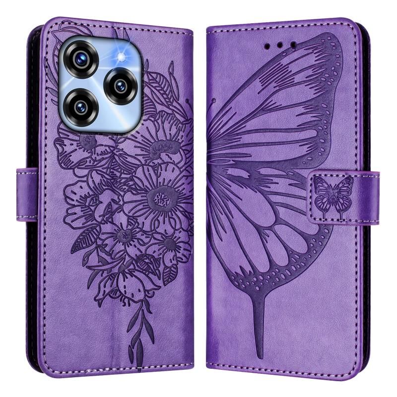 Για Oukitel C50 ανάγλυφη πεταλούδα δερμάτινη θήκη τηλεφώνου (μωβ)