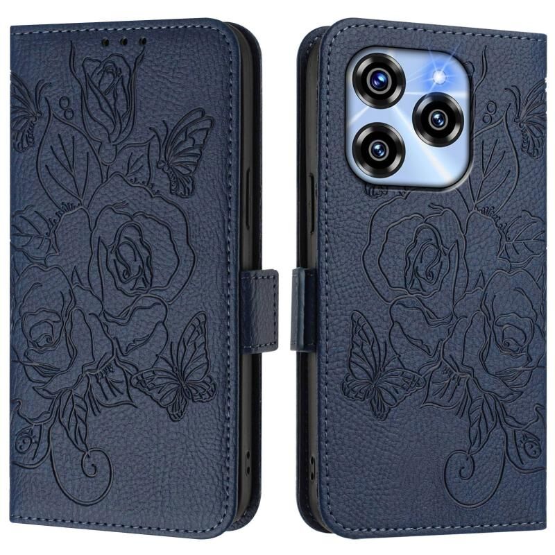For Oukitel C50 Embossed Rose RFID Anti-theft Leather Phone Case(Dark Blue)