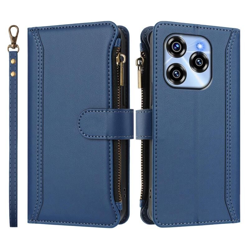 For Oukitel C50 Magnetic Closure 9 Card Slots Zipper Leather Case with Hand Strap(Dark Blue)