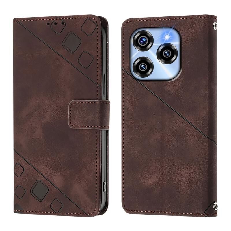 Για το Oukitel C50 δέρμα αίσθηση ανάγλυφο δέρμα τηλέφωνο υπόθεση (καφέ)