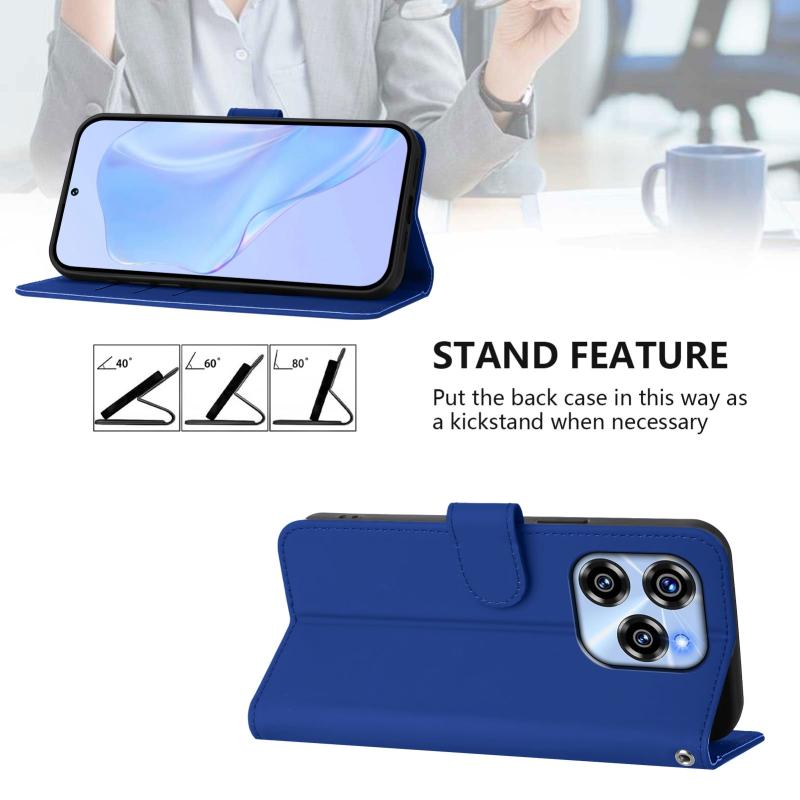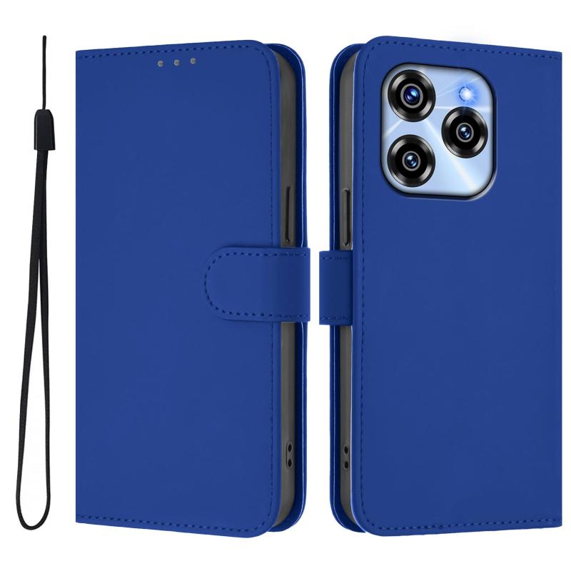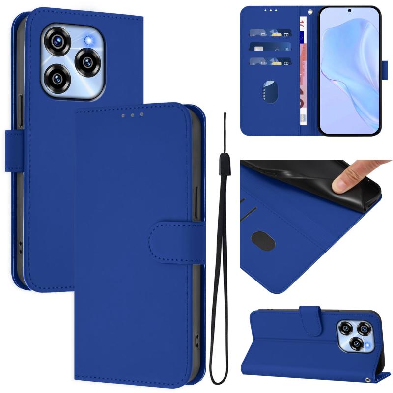 For Oukitel C50 Skin Feel Solid Color Leather Phone Case with Lanyard(Dark Blue)