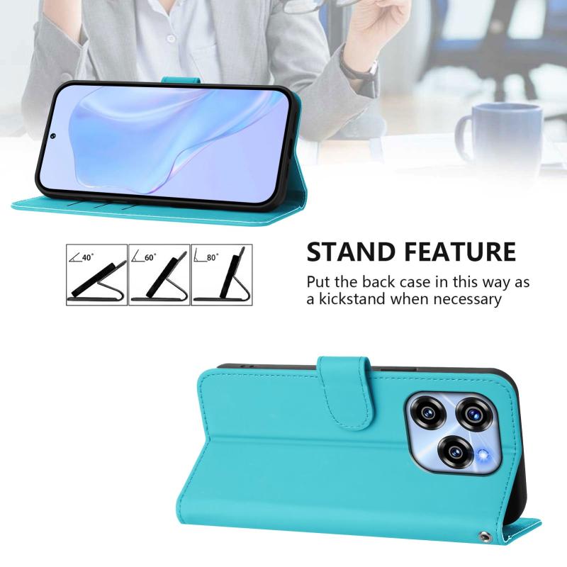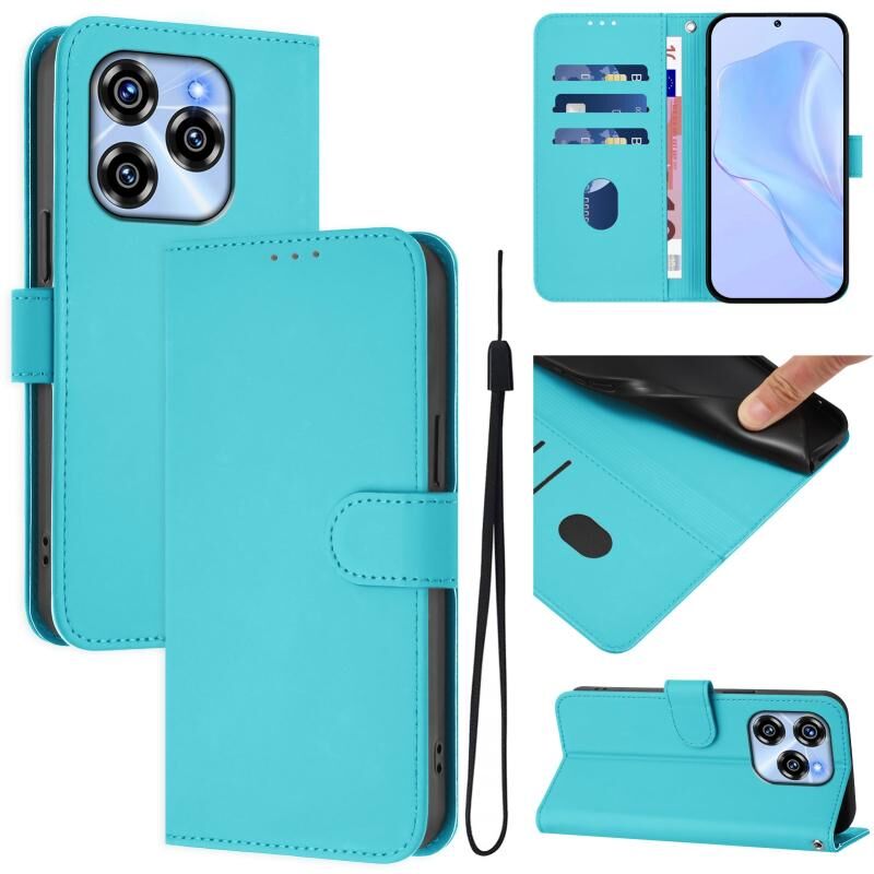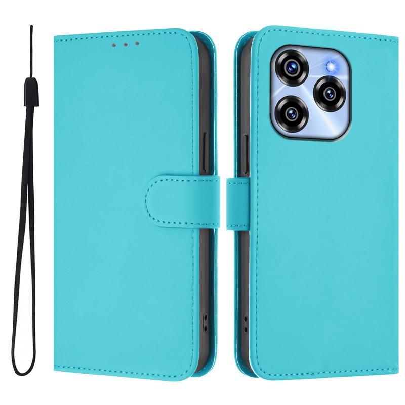 For Oukitel C50 Skin Feel Solid Color Leather Phone Case with Lanyard(Lake Blue)