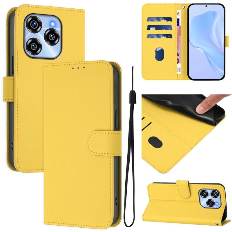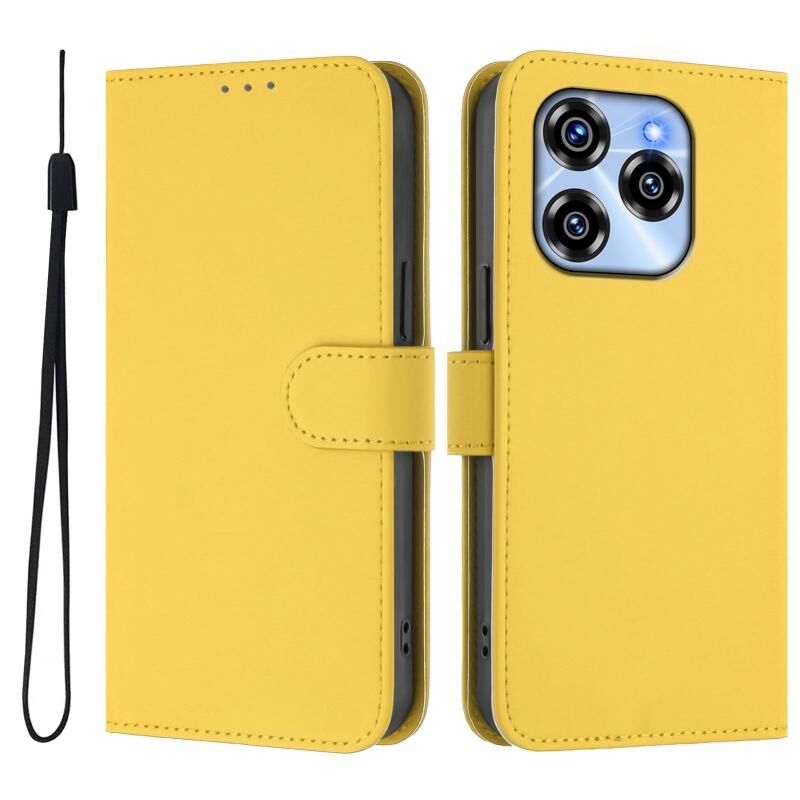 For Oukitel C50 Skin Feel Solid Color Leather Phone Case with Lanyard(Lemon Yellow)