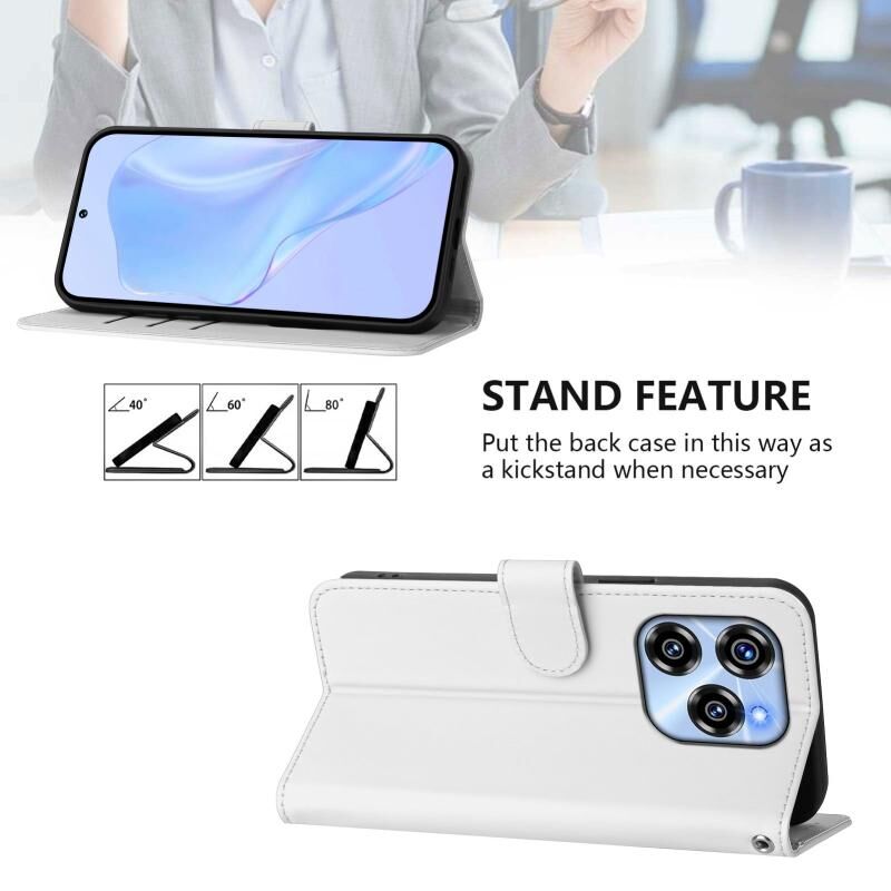 For Oukitel C50 Skin Feel Solid Color Leather Phone Case with Lanyard(White)