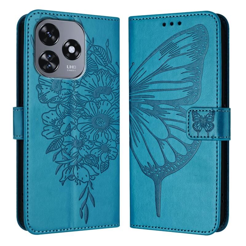 Για Oukitel C51 ανάγλυφη πεταλούδα δερμάτινη θήκη τηλεφώνου (μπλε)