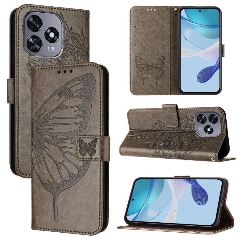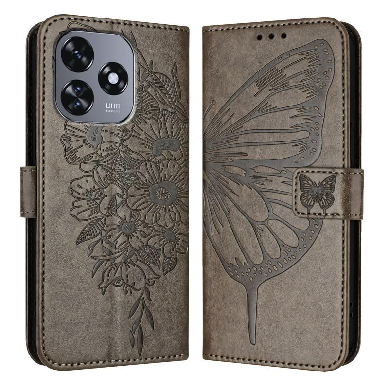 Για Oukitel C51 ανάγλυφη πεταλούδα δερμάτινη θήκη τηλεφώνου (γκρι)