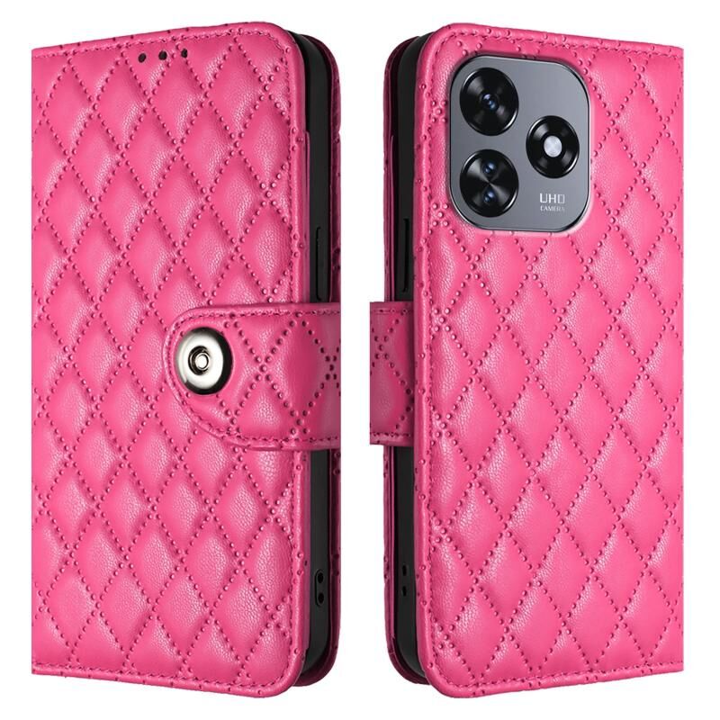 Για το Oukitel C51 Rhombic Texture Flip δερμάτινη θήκη τηλεφώνου με κορδόνι (Rose Red)