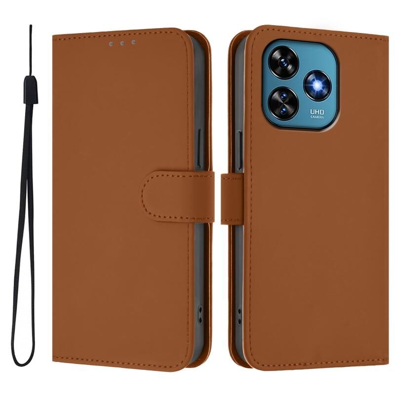 For Oukitel C51 Skin Feel Solid Color Leather Phone Case with Lanyard(Brown)