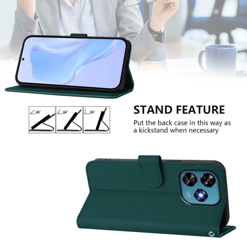 For Oukitel C51 Skin Feel Solid Color Leather Phone Case with Lanyard(Dark Green)