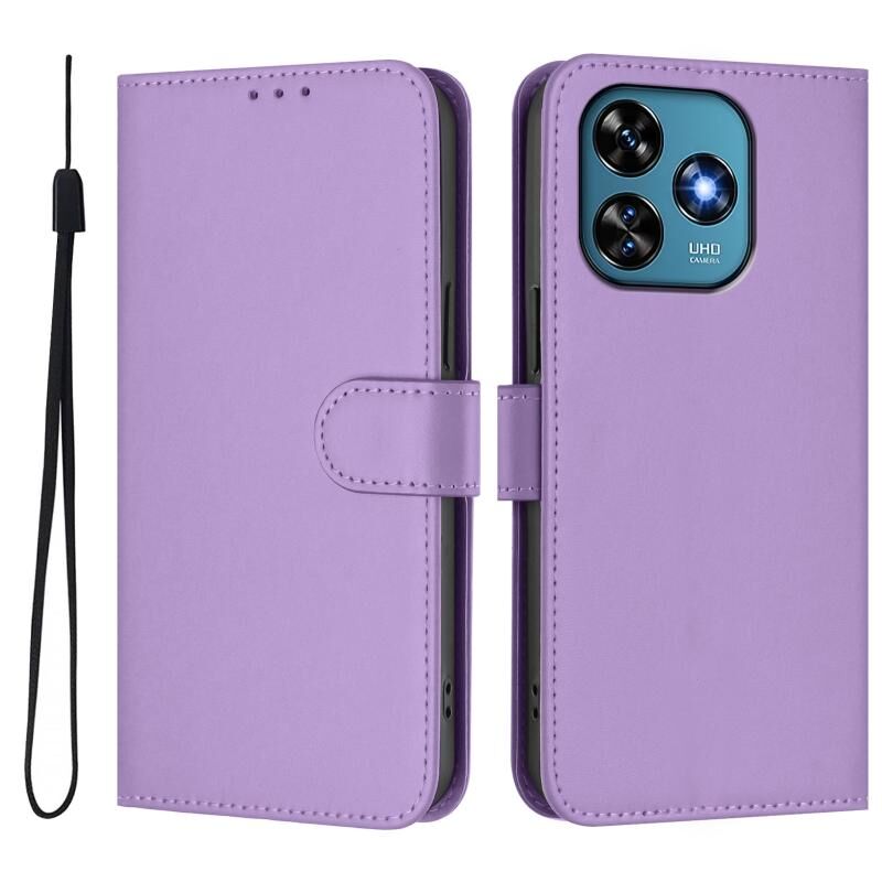 For Oukitel C51 Skin Feel Solid Color Leather Phone Case with Lanyard(Lavender Purple)
