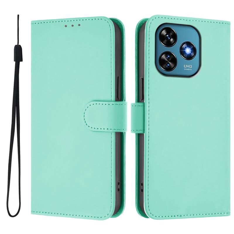 For Oukitel C51 Skin Feel Solid Color Leather Phone Case with Lanyard(Mint Green)